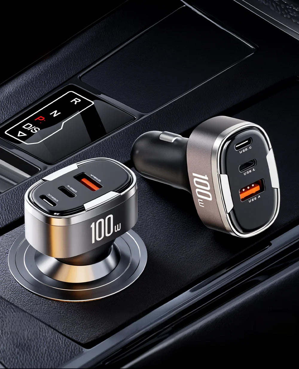 This 100W car charger provides ultra-fast charging for your compatible devices while on the go.