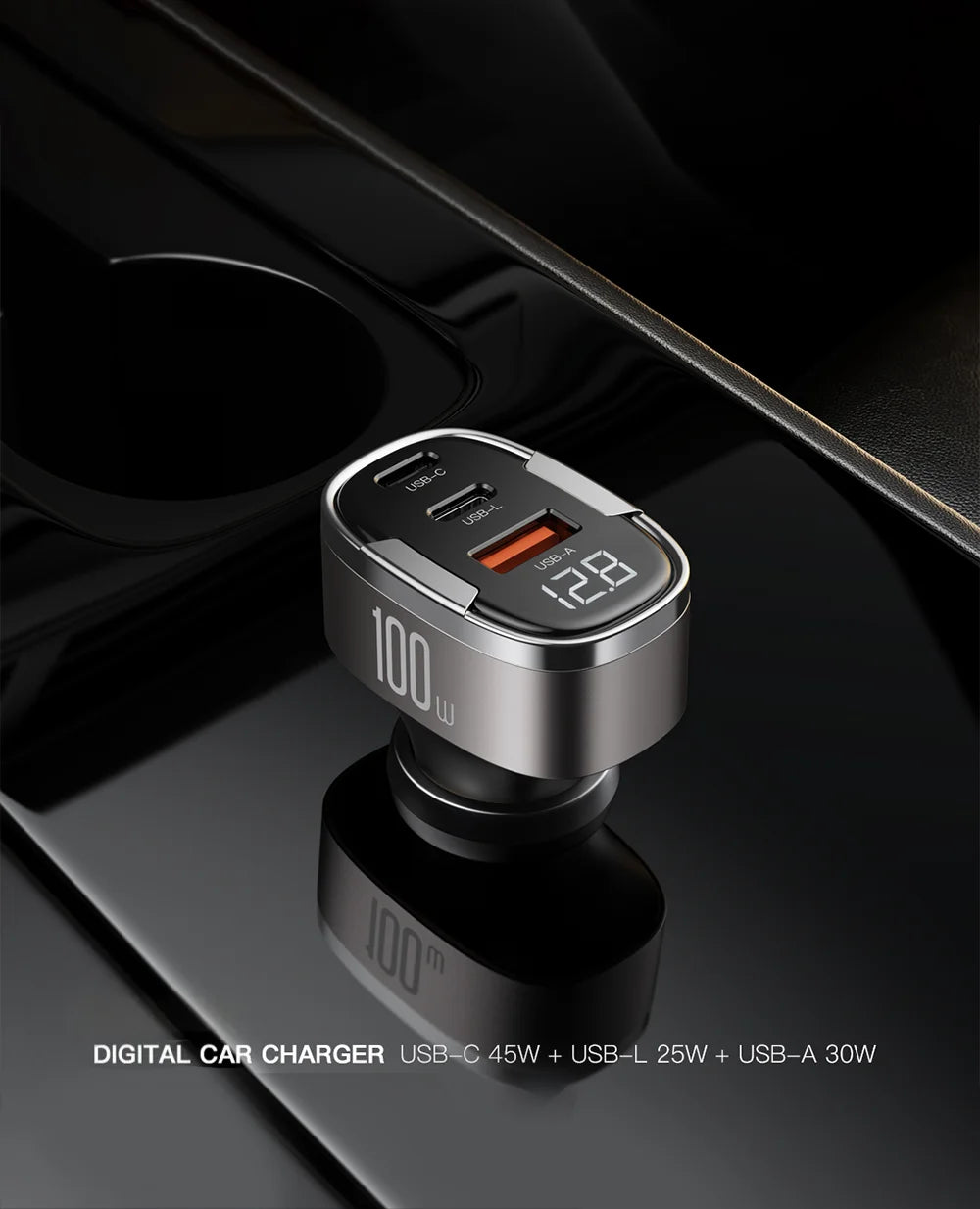 100W Max Fast Car Charger - 3 Ports ( USB-A, USB L , USB C )