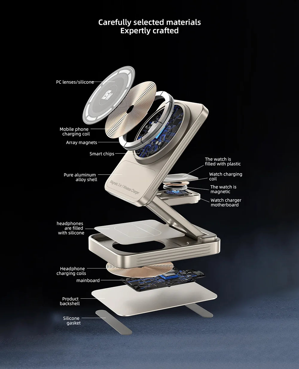 3-In-1Foldable Qi2-Certified Magsafe-Compatible Wireless Charger